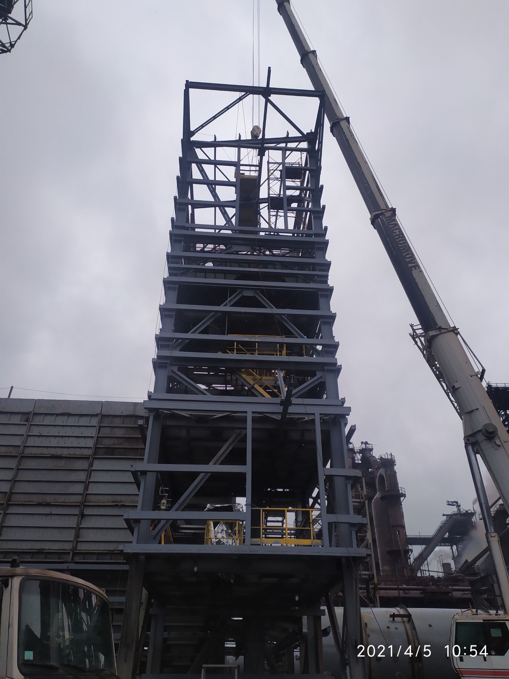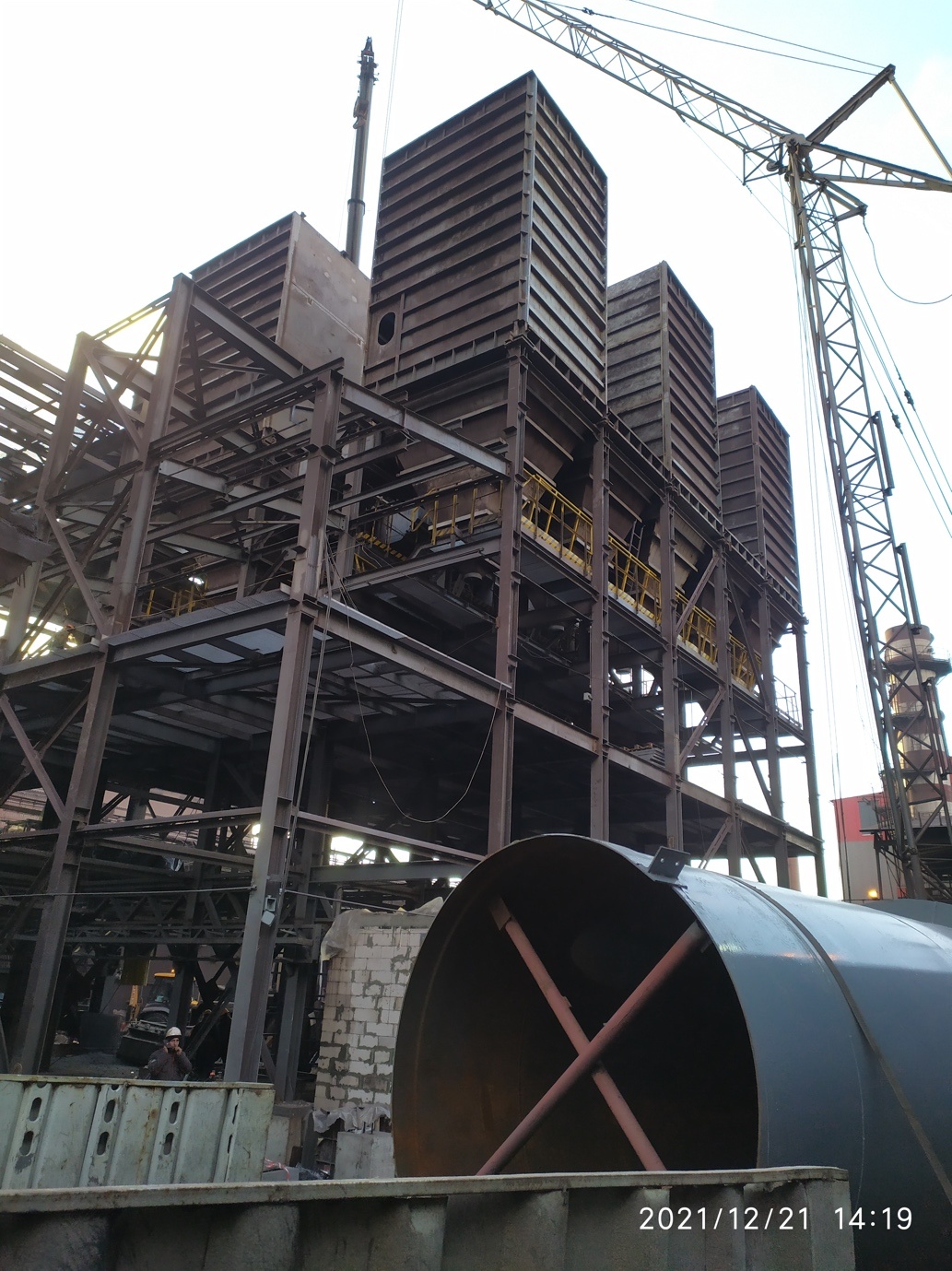 Installation of the supporting structure for the dust collection bunker