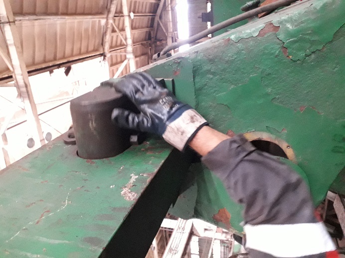 Disassembly of the press, preparation of a detailed and general defect list, inspection of all parts.